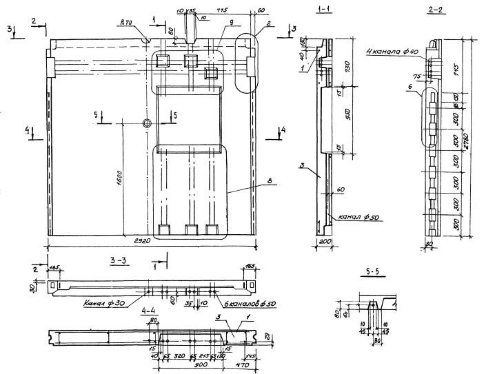 Третья группа включает индексы, обозначающие: первая цифра - вид боковой грани, определяющей примыкание электротехнических панелей к смежным конструктивным элементам (1-вертикальные боковые грани без выступов, 2 - вертикальные грани по всей высоте имеют выступ); две последующие цифры после точки - определяют толщину плиты перекрытия (в сантиметрах), для опирания которой имеется подрезка на верхней грани электротехнической панели; буквенным индексом обозначено положение ниши для электрощита по отношению к длине электротехнической панели или простенка (П-ниша справа, Л- ниша слева), при расположении ниши по центру буквенный индекс не проставляется.