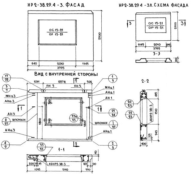 НР2-38.29.4-3   Наружная стеновая панель рядовая по Серии 1.132-1.